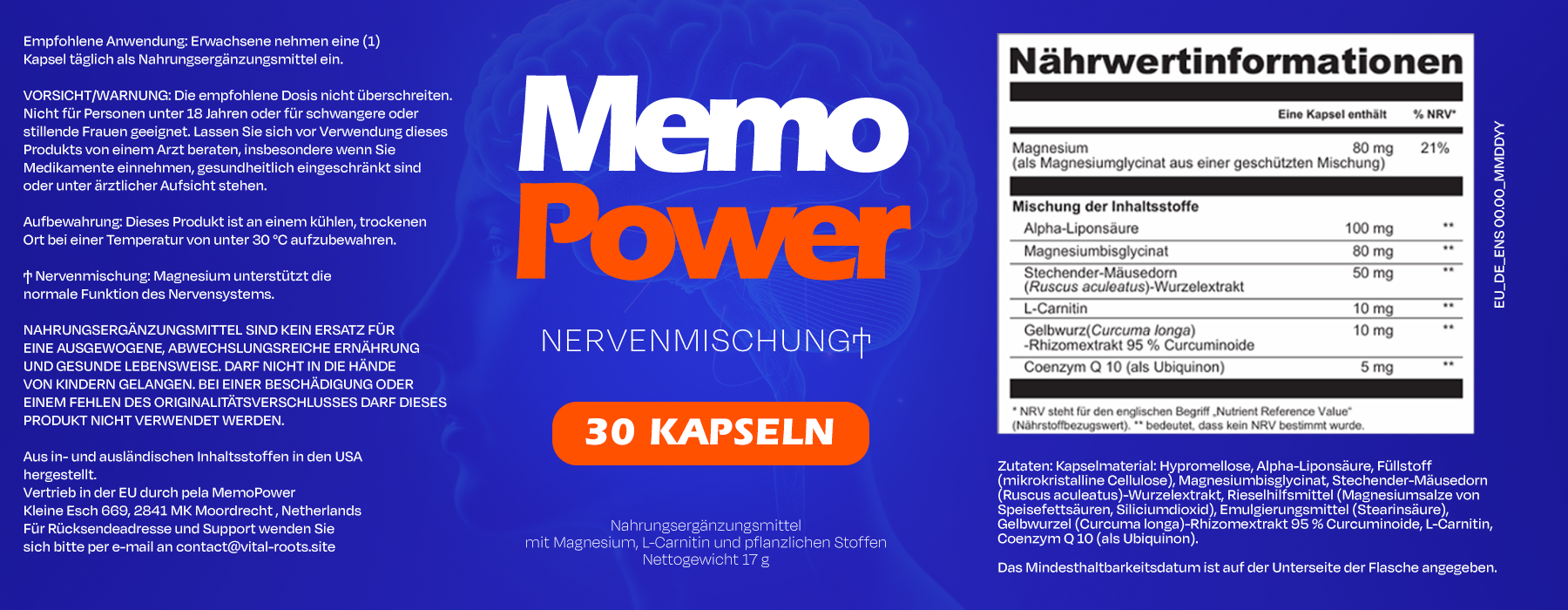 In der heutigen schnelllebigen Welt sind Ablenkungen, Müdigkeit und mentale Überlastung allgegenwärtig. MemoPower™ wurde entwickelt, um die optimale Gehirnfunktion zu unterstützen und Ihnen dabei zu helfen, jeden Tag klar, produktiv und selbstbewusst zu bleiben.